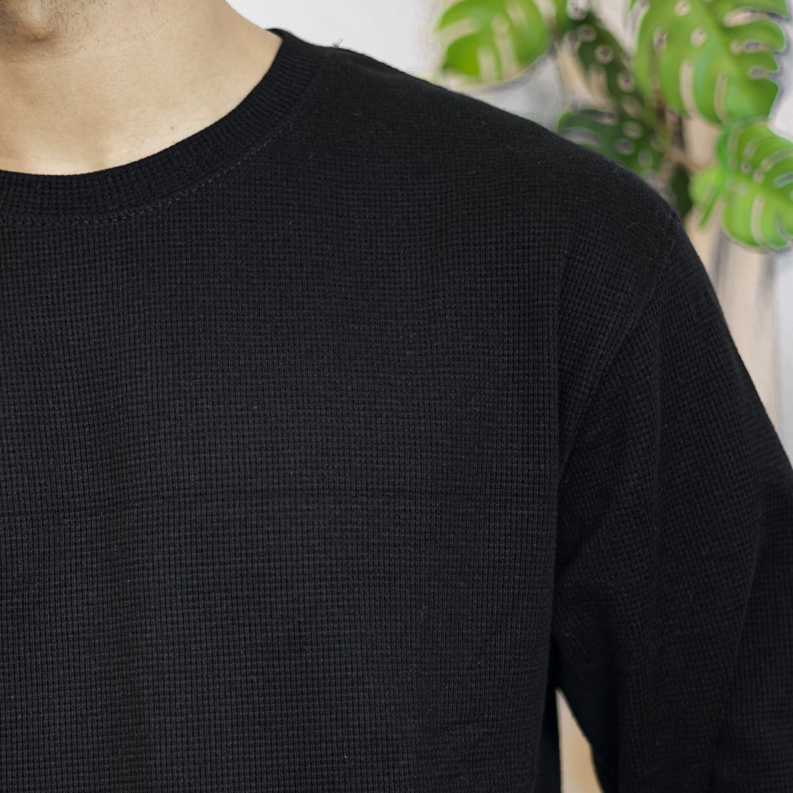 Waffle Full Sleeve Tee- Black
