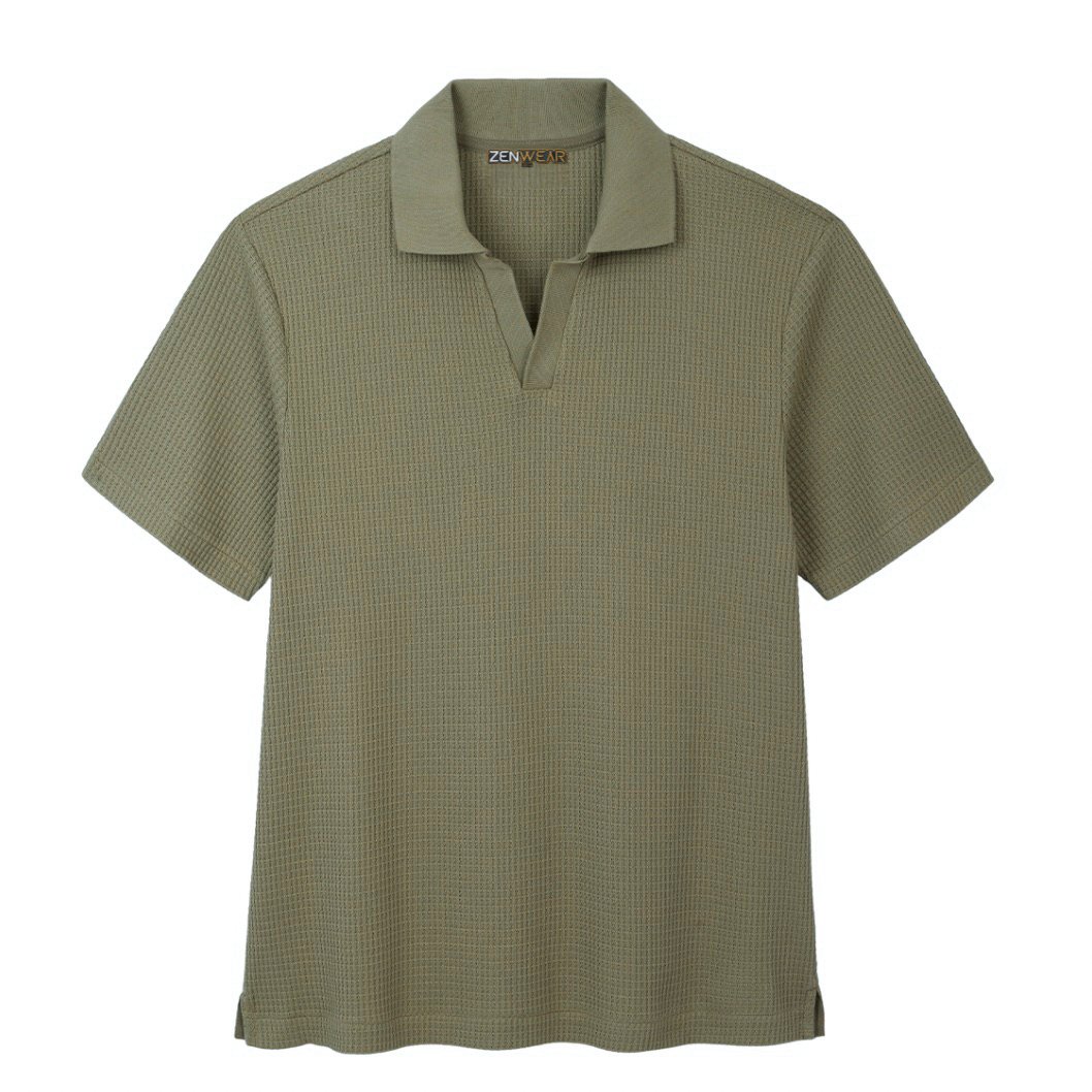Waffle Knit Old Money Polo-Olive Brown
